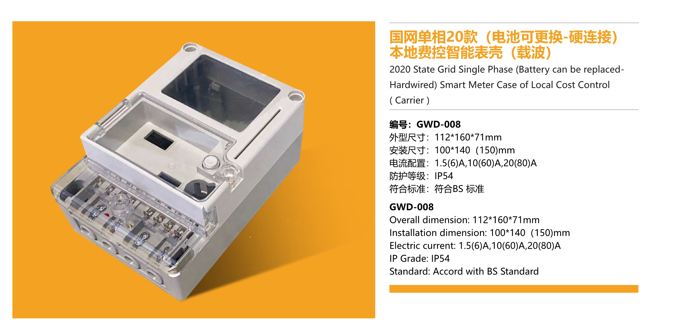 國網單相20款(電池可更換-硬連接)本地費控智能表殼(載波)